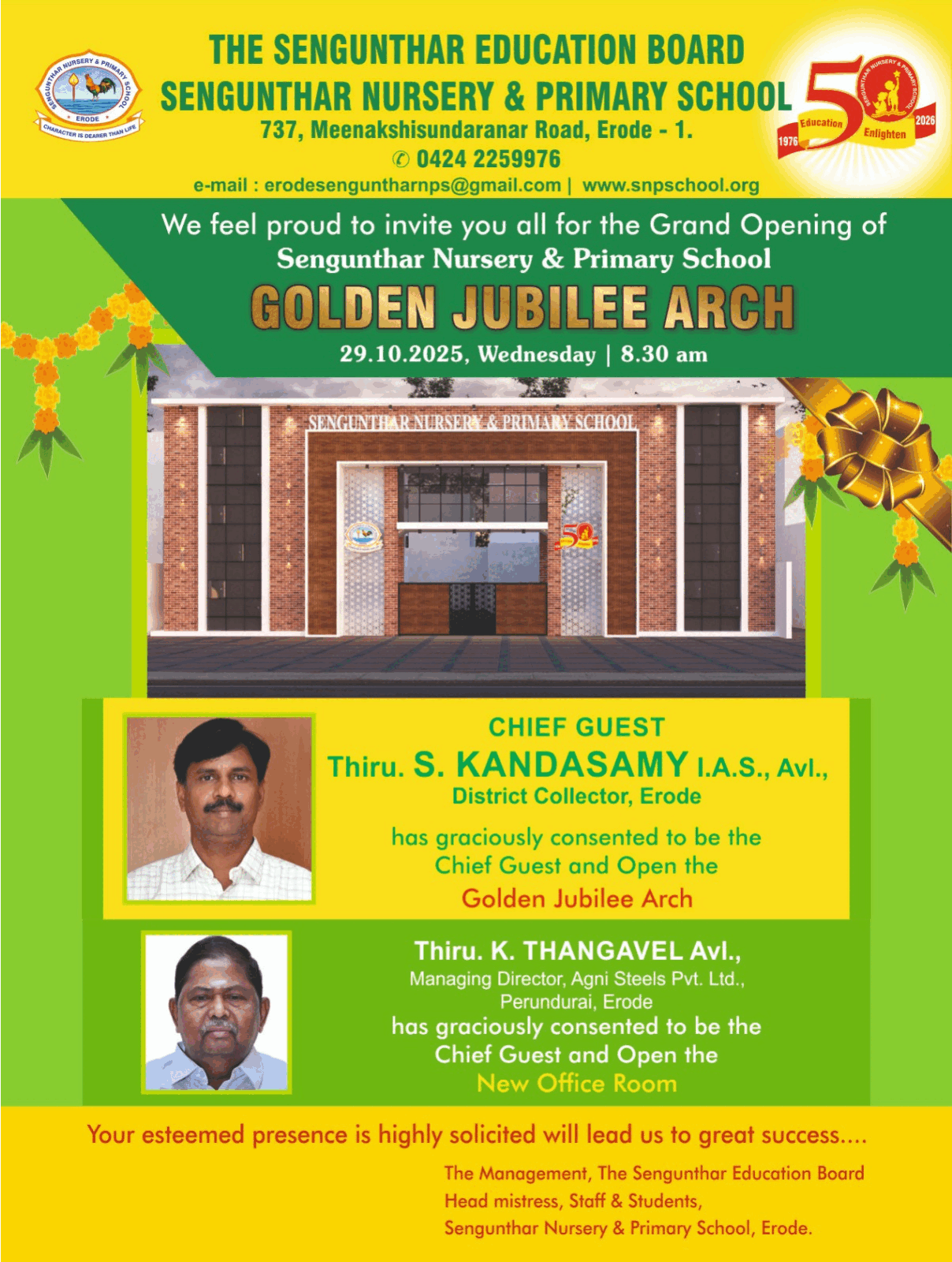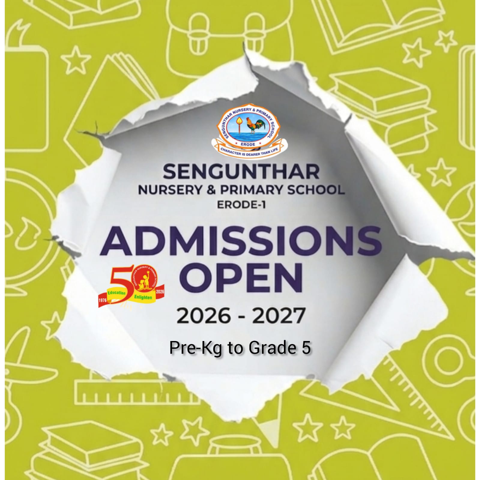 Sengunthar Nursery & Primary School Materialized in the year 1976 which is rendering it's noble. Service of 47 years by devoted board members and sincere faculties.