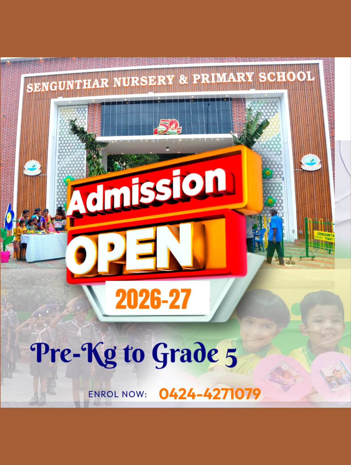 Sengunthar Nursery & Primary School Materialized in the year 1976 which is rendering it's noble. Service of 47 years by devoted board members and sincere faculties.